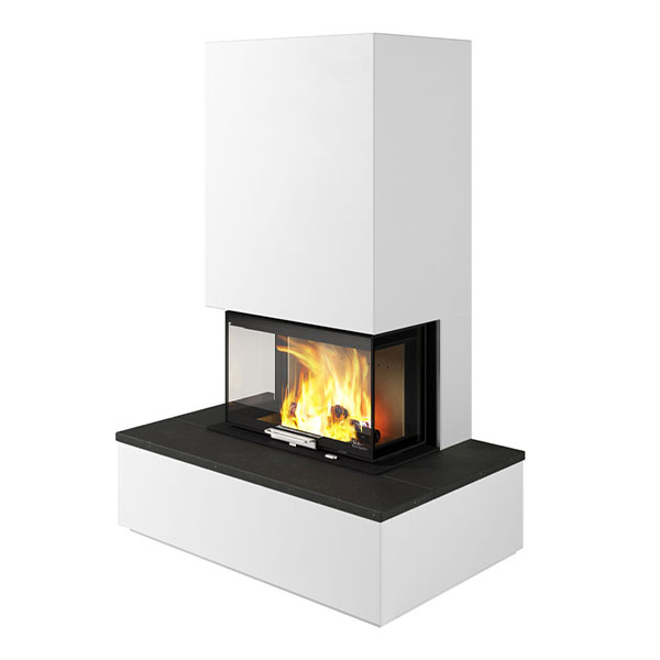 Nordpeis Monaco Bench ist eine wunderschöne, große Kaminanlage mit Glasscheiben an drei Seiten und elegant versteckten Luftschlitzen im Sockel, was ein sehr klares, modernes Erscheinungsbild schafft. Die Kaminanlage ist mit einer exklusiven hochschiebbaren Tür ausgestattet und bietet eine gute Sicht auf die Flammen von allen Seiten. Monaco Bench verfügt über einen niedrig positionierten Heizeinsatz und eine umlaufende Bank ideal für gemütliche Abende auf dem Sofa.
