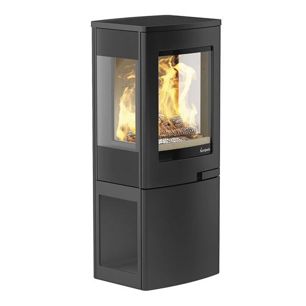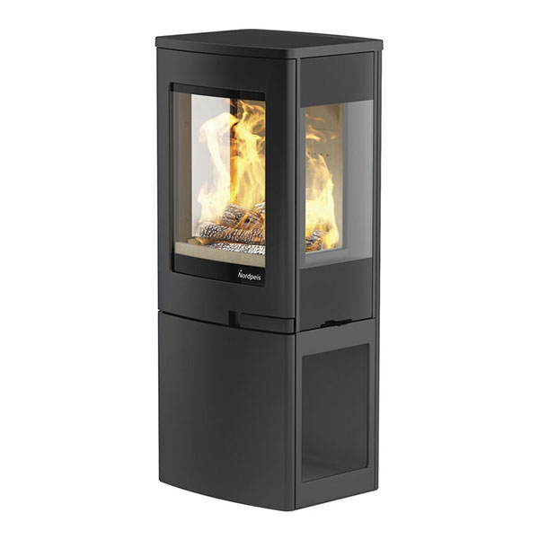 Nordpeis Uno 2 ist ein kleiner Kaminofen im klassisch-modernen nordischen Design. Er ist dreiseitig verglast, womit eine gute Sicht auf die Flammen geboten ist. Im Sockel befindet sich ein offenes, dekoratives Holzfach. Die Tür ist selbstschließend, was die Sicherheit und den Komfort erhöht.