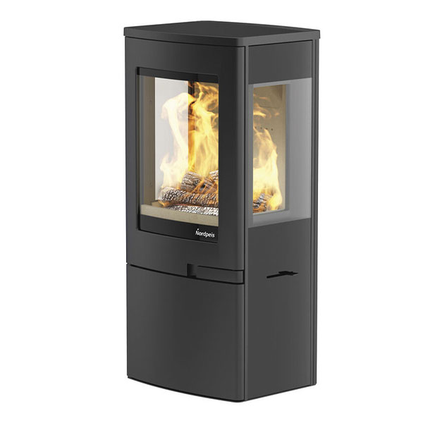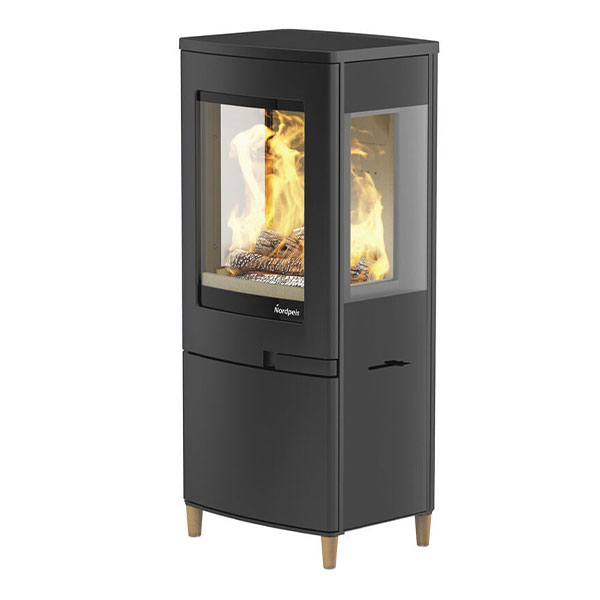 Nordpeis Uno 4 ist ein kleiner Kaminofen im klassisch-modernen nordischen Design. Er ist dreiseitig verglast, womit eine gute Sicht auf die Flammen geboten ist. Wählen Sie Beine aus Eiche als Accessoire mit persönlichem Touch. Die Tür ist selbstschließend, was die Sicherheit und den Komfort erhöht.